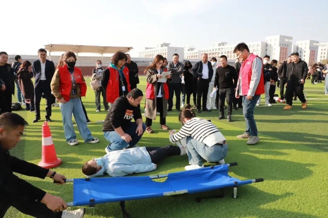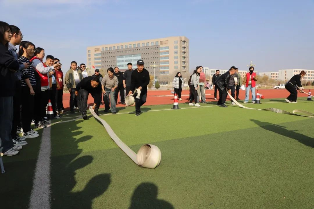 來自集團本部、產(chǎn)融公司、濱投公司、綜投公司、土投公司共5支代表隊的70余名干部職工參加了此次技能競賽活動。本次比賽根據(jù)集團本部及各二級公司工作實際,共設(shè)置了連接水帶接力、滅火器接力滅火、接力穿脫消防服、傷員緊急救治、佩戴防煙面罩模擬逃生共5項實戰(zhàn)項目,真實模擬了日常工作中遇到突發(fā)火災(zāi)時,正確處置火情、有序開展自救互救的場景,不僅檢驗了干部職工應(yīng)急技能的掌握程度,更體現(xiàn)了團隊協(xié)同配合與應(yīng)急反應(yīng)能力。